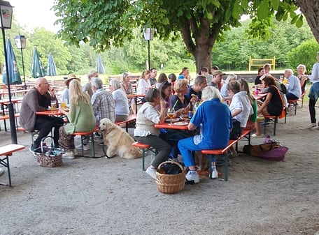 Die Betreiber waren so freundlich, uns einen Grill zu leihen, die benötigten Tische für uns zu reservieren und uns die Möglichkeit zu geben, mit unseren mitgebrachten Speisen ein Buffet für unsere Helfenden aufzubauen. Die Getränke wurden selbstverständlich vor Ort gekauft.